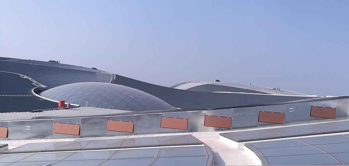 5)屋頂面積:18萬(wàn)平方米,8根C形柱作支撐,相當于25個(gè)標準足球場(chǎng);